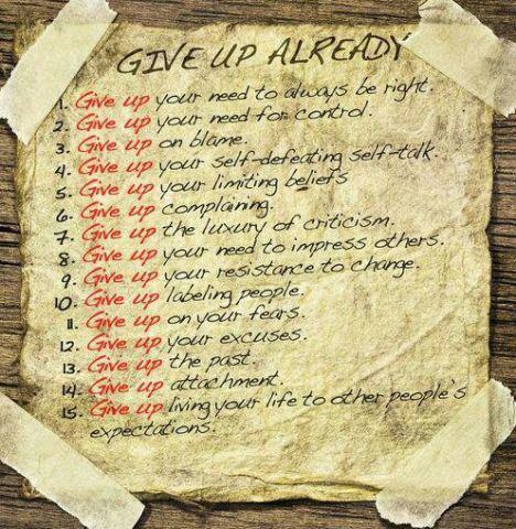 Here is a list of 15 things which, it is said, if you give up, will make your life a lot easier and much happier. It’s argued that many of us hold on many things that cause us a great deal of pain, stress and suffering but, instead of letting them all go, we cling on to them. Now you can give up all those things that do you more harm than good.