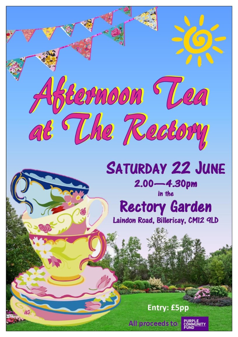 I’m planning an Afternoon Tea in the Rectory Garden on 22 June from 2.00 – 4.30 pm to raise funds for my trip to the Philippines with the Purple Community Fund in July.