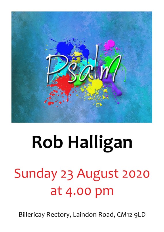 On Sunday 23 August 2020 singer/songwriter Rob Halligan will be performing his concept album, and book of the same name, ‘Psalm’ in the Rectory Garden, Billericay. Rob is no stranger to Billericay and this is sure to be a popular event – especially with limited numbers in place.