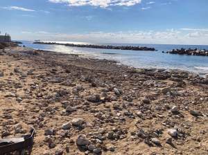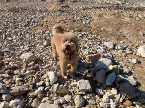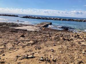 Suns out dogs out! A very pleasing 19’ walking along the coastal path in #Chloraka #Paphos with Dylan – after the storms and cold of recent days. #Alyki beach looks as though it has taken a bit of a battering. FYI, Dylan had a trim and a wash the other day – hence the bouffant look!!