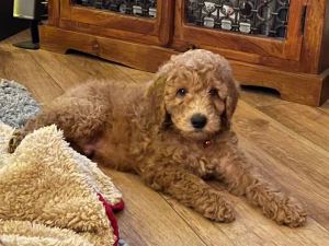 Ben and Beth’s adorable mini Golden Doodle, Presley, is like a younger Dylan and just as cuddly and lively.