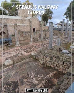For years, some say since 2019, the walkway around St Paul’s Pillar and Agia Kyriaki Chrysopolitissa in Kato Paphos have been closed because it was unsafe. Last year, they actually started replacing the old wooden boardwalk with a new, sturdier path, and now, on Shrove Tuesday 2026, it has re-opened! Not only that, but the signs have all been replaced too, so you can once again wander above ruins and marvel at the mosaics. Interestingly, this was opened without fanfare or any official ceremony or even a blessing from the Orthodox Church. Strange! Not even sure if choosing Shrove Tuesday for the re-opening has any significance. I’ll be sure to have a walk around next time I’m there. NB. A bit of a warning here, the new grid isn’t suitable for stiletto shoes and the steel grid does get slippery when it’s wet. .
