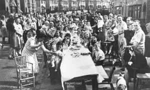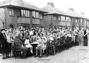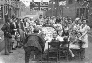 In the suburbs, street parties were thrown, fancy dress parades were held for children, and many people went to church to thank God for in the victory.